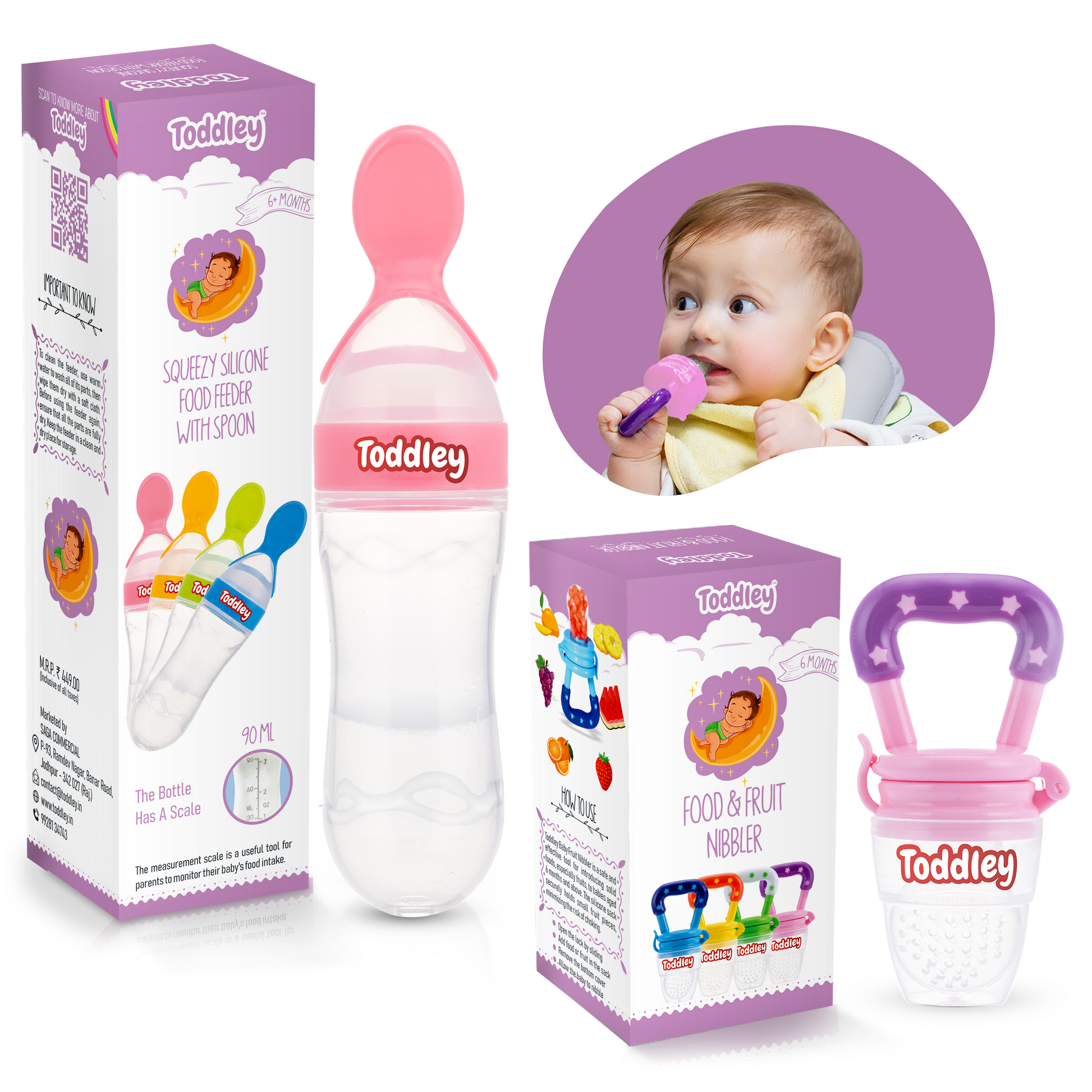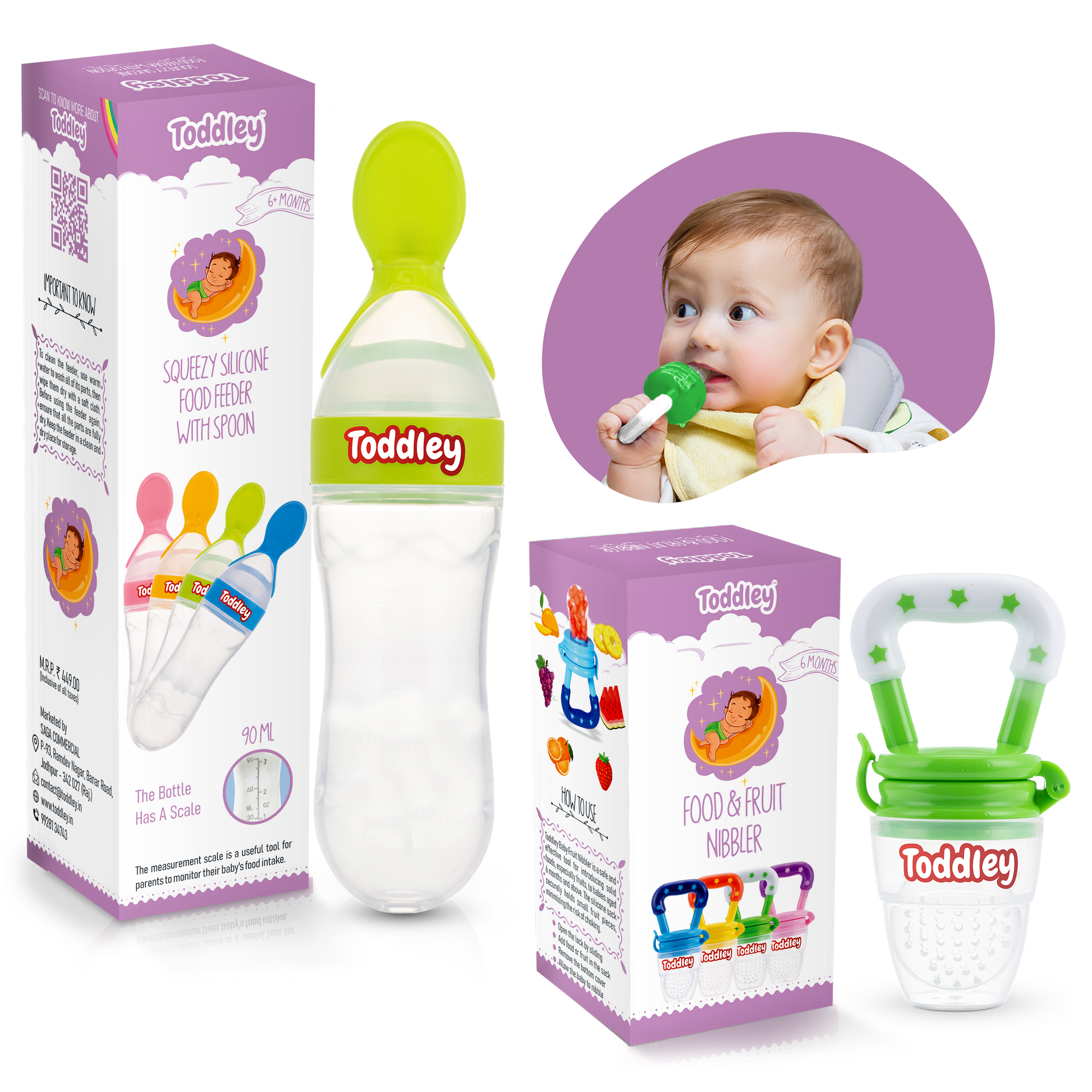 2 in 1 Combo - Spoon Food Feeder + Fruit Nibbler - For 6+ Months - Multicolor